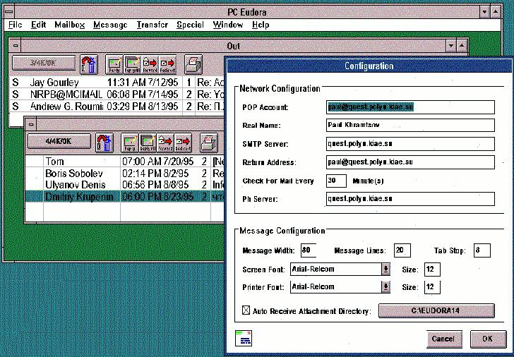 В заключение хотелось бы отметить, что возможности почты не ограничиваются только пересылкой корреспонденции. По почте можно получить доступ ко многим ресурсам Internet, которые имеют почтовых роботов, отвечающих на запросы страждущих. Поэтому имеет смысл более детально изучить программное обеспечение, поддерживающее e-mail. Время, затраченное на чтение документации и опыты, окупятся возможностью получения информации из информационных архивов сети.