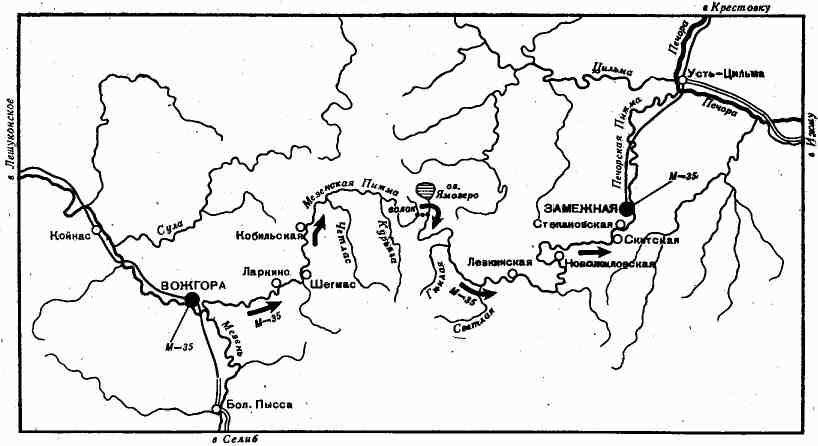 ской Пижмы, после чего наметить трассу волока, зависящую от уровня